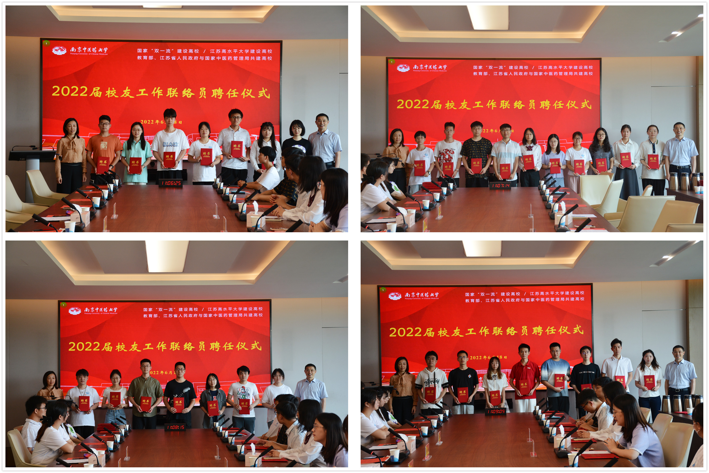 仪式上,学生工作处处长屠宏斐宣读了《南京中医药大学2022届校友工作联络员名单》,与会领导为校友工作联络员代表颁发聘书。