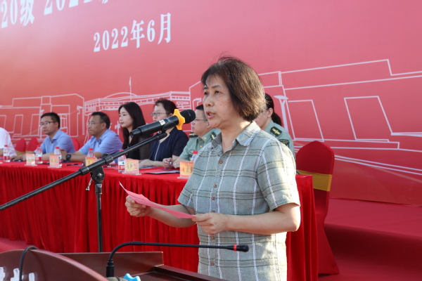 刘晓作动员讲话。他首先向承训学校领导、教官以及我校退役大学生士兵教官表示衷心感谢和崇高敬意。他指出,由于新冠肺炎疫情影响,我校2020级和2021级学生军训延期至现在进行,补上《国防教育法》规定的大学生必修课。同学们刚刚走出考场,就已集结完毕、整装列队,站上军事训练的操场。操场就是考场、跑道就是赛道。他向参训学生提出三点希望。一是选择责任,涵养深沉的家国情怀。希望同学们把个人发展个人奋斗,汇入到国家民族的前途命运中,涵育奔腾汹涌的爱国情怀,奏响“清澈的爱,只为中国”的时代强音。二是选择坚强,磨砺青年该有的样子。希望同学们在军训中锤炼铁身板、铁肩膀、铁的纪律、铁的作风,以胜战用我、用我必胜的气魄,以青年人的激情和锐气展现硬核担当。三是选择奔跑,绽放青春的绚丽之花。希望同学们把在军训中形成的好思想、好作风带到将来的学习生活中去,永远跟主旋律在一起,永葆积极向上的正能量,不负时代、不负韶华,燃烧卡路里、跑出加速度,绽放绚丽的青春之花!
