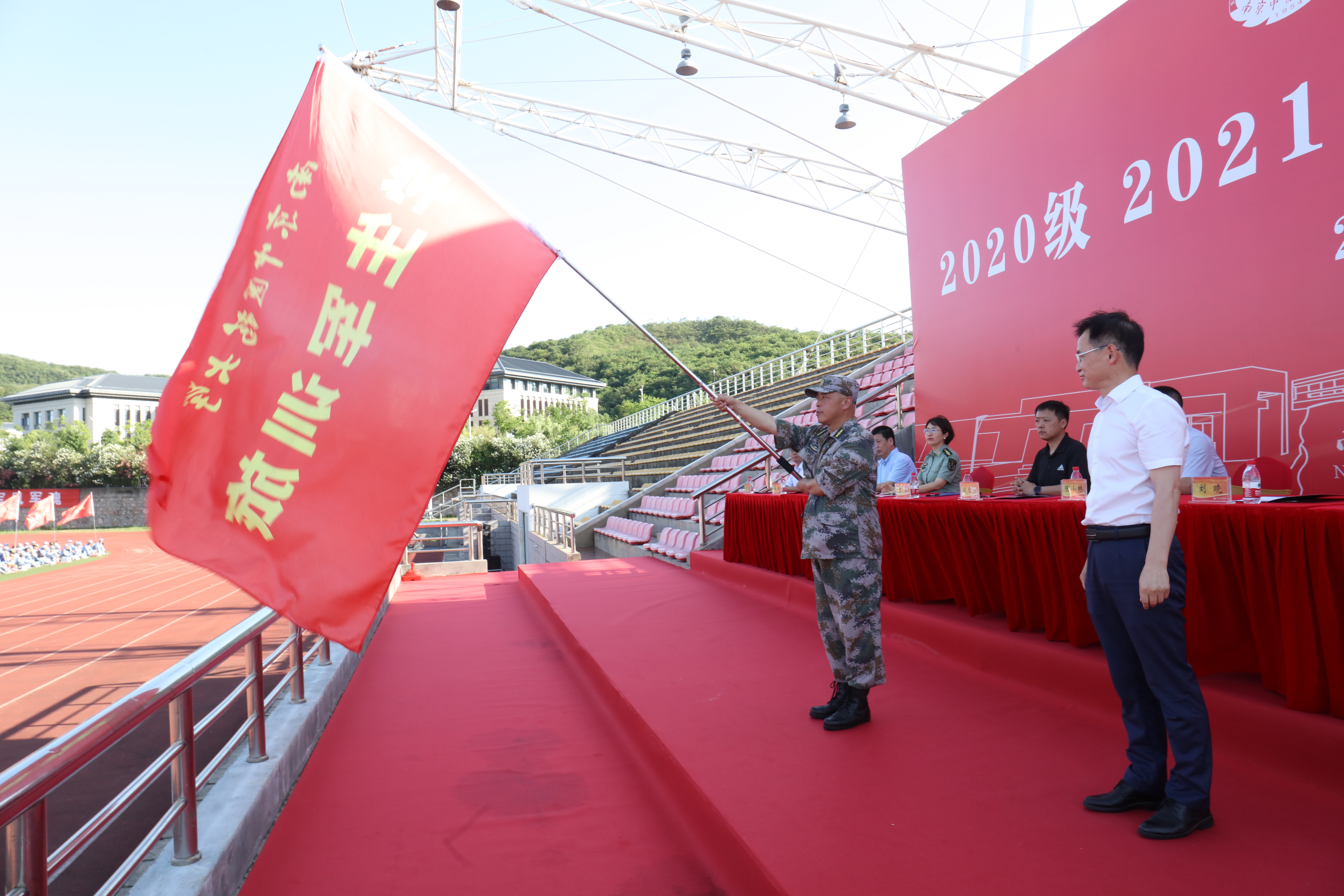 动员大会在庄严的国歌声中拉开帷幕。刘晓向军训旅旅长、南京信息职业技术学院士官学院副院长曹军授军训旅旅旗。