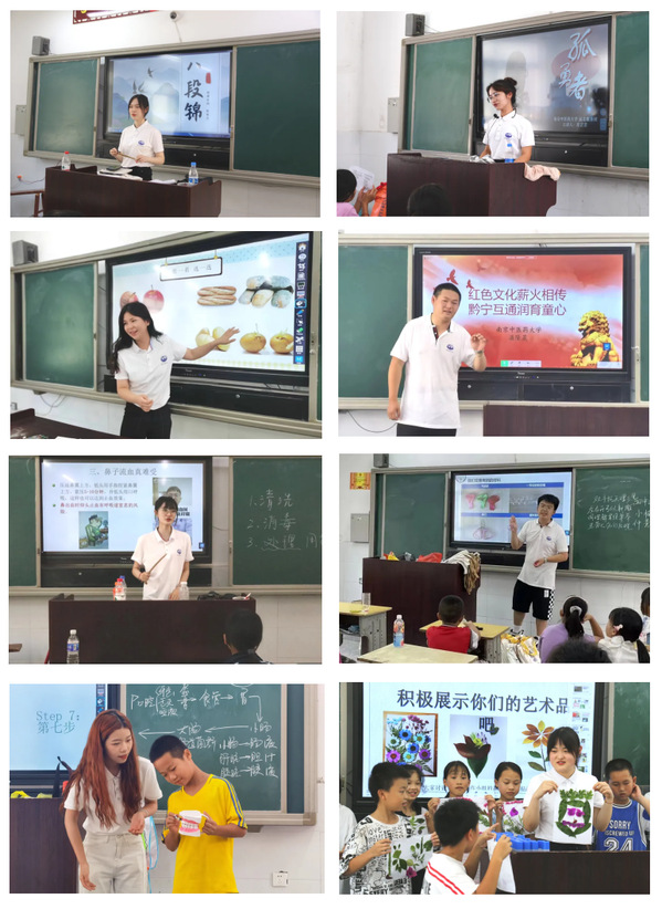 三天支教过程中,9名支教志愿者带领160余名孩子练习八段锦、制作中药香囊、绘制中药植物拼贴画、研制中药植物驱蚊水,学习红色文化、应急救护、人体消化系统、食品安全等知识,累计授课96学时,丰富充实孩子们的假期生活,扩宽视野和知识面,厚植爱国主义情怀,传播中医药文化。