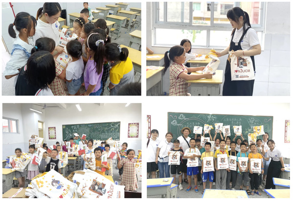 远志服务团师生发放《可爱的中国》《中医药文化知识》和南中医文创产品“小楠•仲薏”帆布包