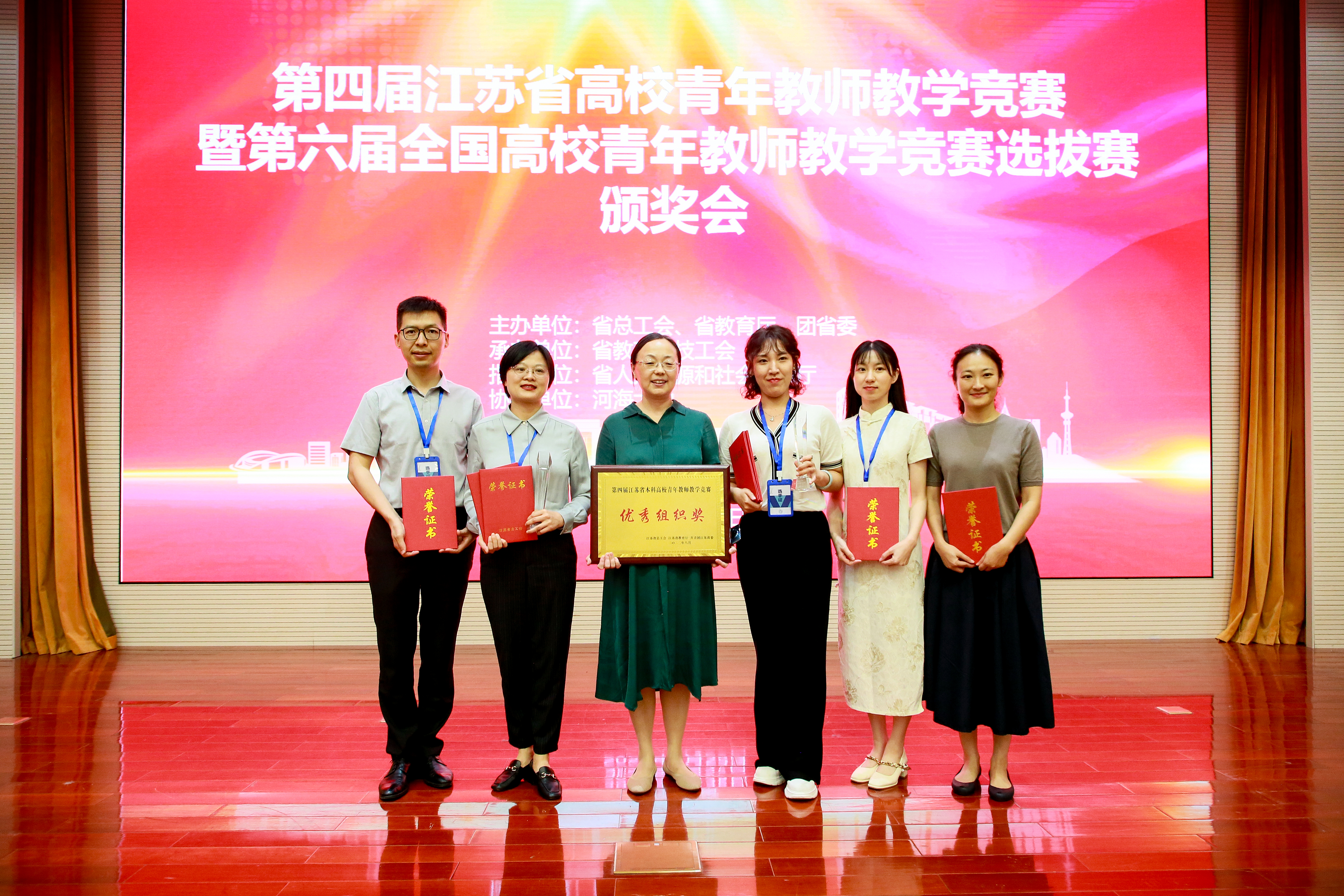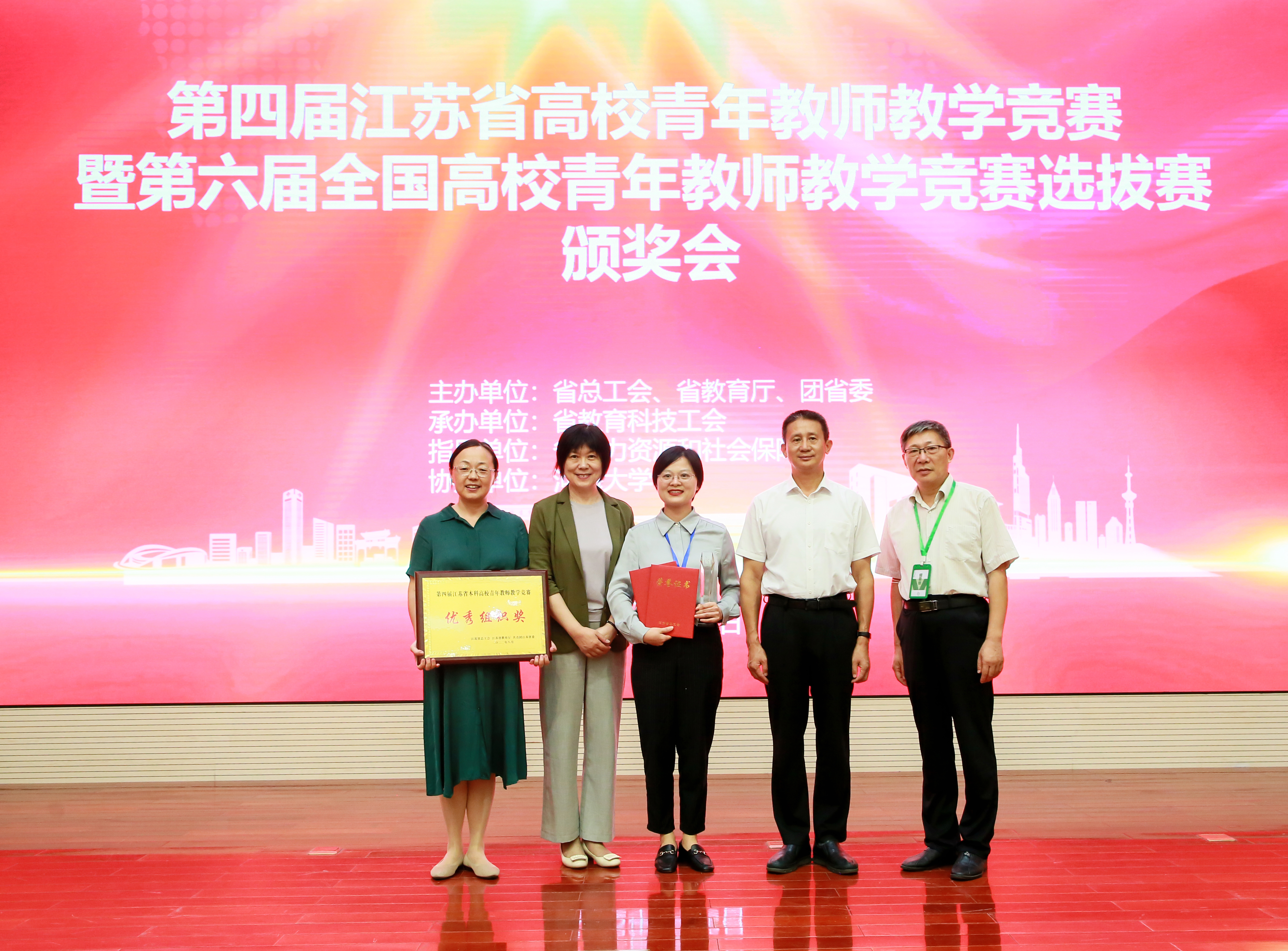 8月22日至25日,第四届江苏省高校青年教师教学竞赛暨第六届全国高校青年教师教学竞赛选拔赛在宁举行。我校5名教师参赛,获特等奖1项、一等奖1项、二等奖3项,学校获优秀组织奖,实现该赛事特等奖的突破并晋级国赛,取得历史最好成绩。