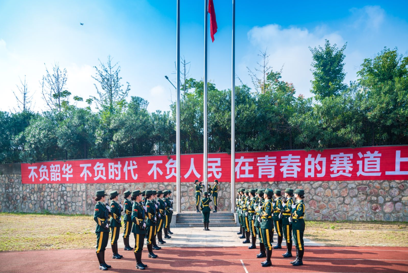 典礼在雄壮的国歌声中拉开帷幕。大学生女子国旗护卫队执行升旗任务,她们着装整齐、步伐坚定、口号铿锵有力、动作整齐划一。