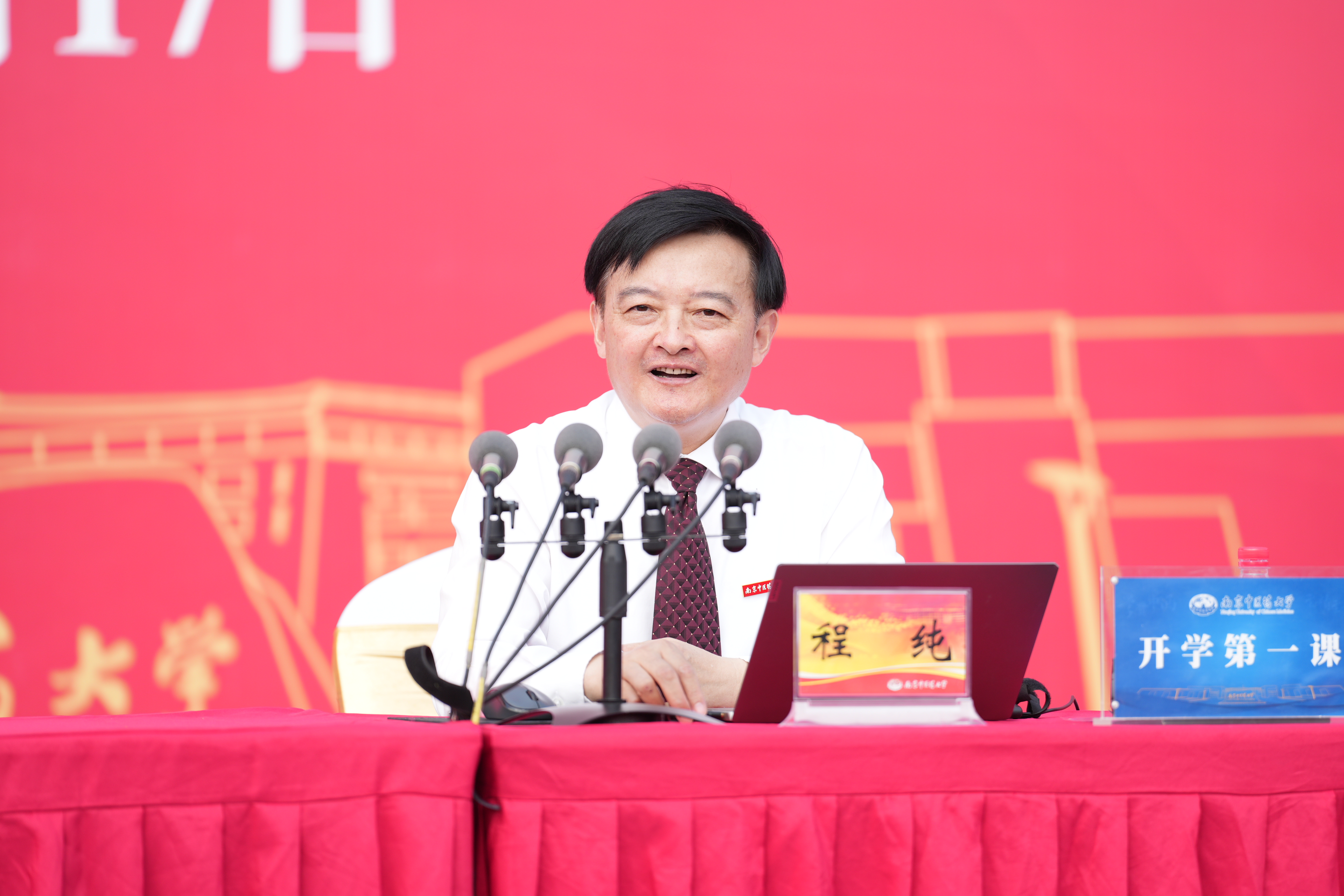 典礼结束后,程纯以《怀报国志,做筑梦人》为题,为全体新生讲授开学第一课。