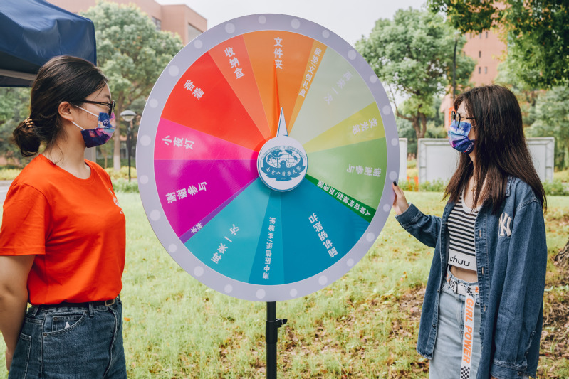 食堂南广场设置迎新专区,LED大屏循环播放泰州校区两年来的活动剪影,使萌新们直观感受校区的风采和活力。此外,现场还设置了“未来信箱”和“幸运大转盘”等迎新活动。