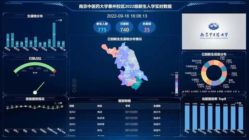 在校门处,学校设立新生报到动态数据监测屏,方便家长第一时间掌握实时数据,同时还为新生准备了精美伴手礼,同学们纷纷表示收获满满,充分感受到南中医大家庭关怀和爱意。