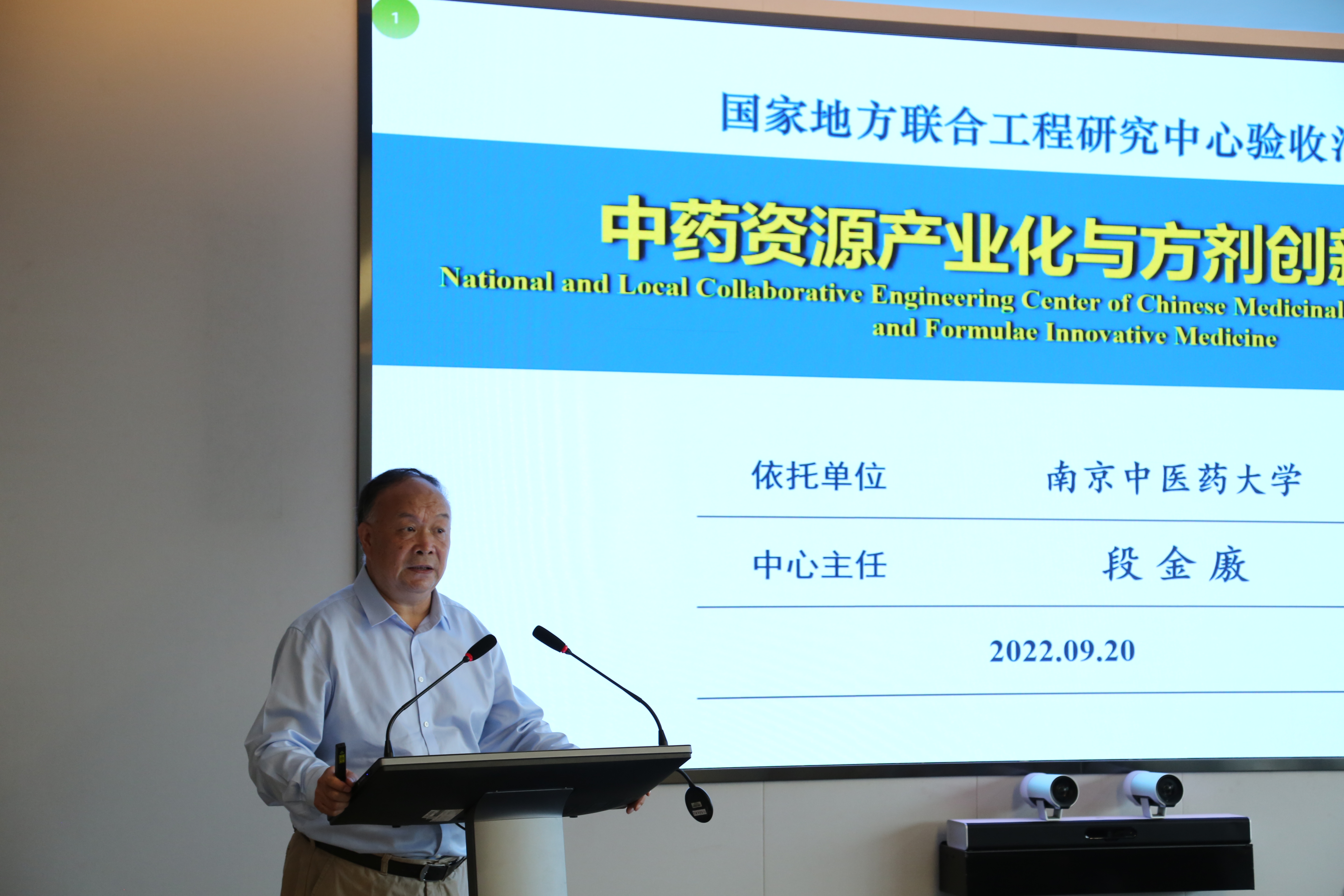 程海波代表学校对与会专家和领导表示欢迎,梁宝珊对验收工作提出具体要求,中心负责人段金廒教授详细汇报了中心建设期运行情况及取得成效。经听取汇报、实地考察、资料审阅以及质询等环节,专家组认为中心高质量完成了建设任务,达到了预期目标,在中药资源循环利用领域取得了突破性成果,一致同意通过验收。