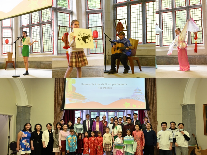 参加首届全爱小学生“汉语桥”中文秀大赛的小选手和戈尔韦大学师生表演了音乐、舞蹈、魔术等节目,展示了中国书法、绘画等才艺,表现出爱尔兰学生对中文学习的热情。