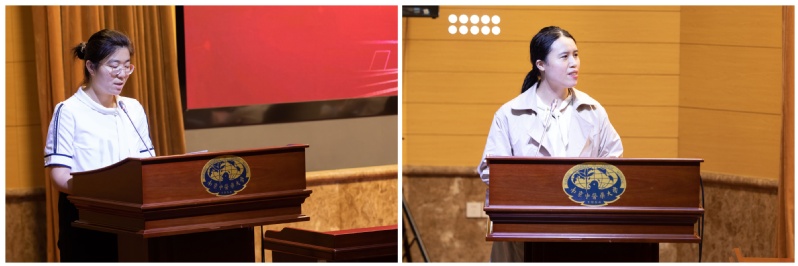 2021年入职教师代表、医学院•整合医学学院药理学系夏娴和马克思主义学院•医学人文学院马克思主义中国化教研室罗馨分别结合培训内容、成长体悟和教学心得进行交流汇报。