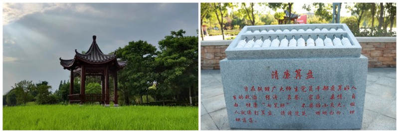 “清风杏语”中医药廉洁文化广场占地面积约2000平方米,利用泰州校区校园人工湖东岸空间,在现有长廊、石台、草坪、绿植等基础上,结合新建的仿古六角亭,布置了中医药廉洁文化橱窗、廉洁文化小品、廉洁长椅、廉洁标语、清廉算盘等。广场充分将中医药传统文化与党风廉政建设贯通融合,传承党的廉洁基因,发挥思想铸魂作用,让师生在欣赏美丽风景的同时,在潜移默化中接受廉洁理念,使廉洁思想在校园深入人心,进一步营造校园风清气正的氛围,为校区、学院事业高质量发展保驾护航。