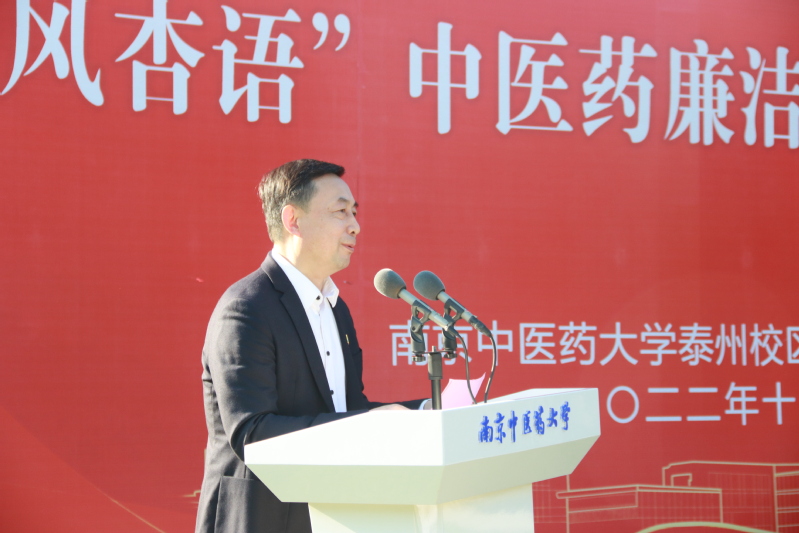 校党委常委、副校长、泰州校区管委会主任孙志广代表学校向出席揭牌仪式的各位嘉宾表示诚挚欢迎,向中医药廉洁文化广场的竣工表示热烈祝贺。孙志广简要介绍了广场的建设情况,强调了加强新时代廉洁文化建设的重要意义,肯定了广场在贯通融合中医药传统文化和党风廉政建设、传承党的廉洁基因方面的重要作用。