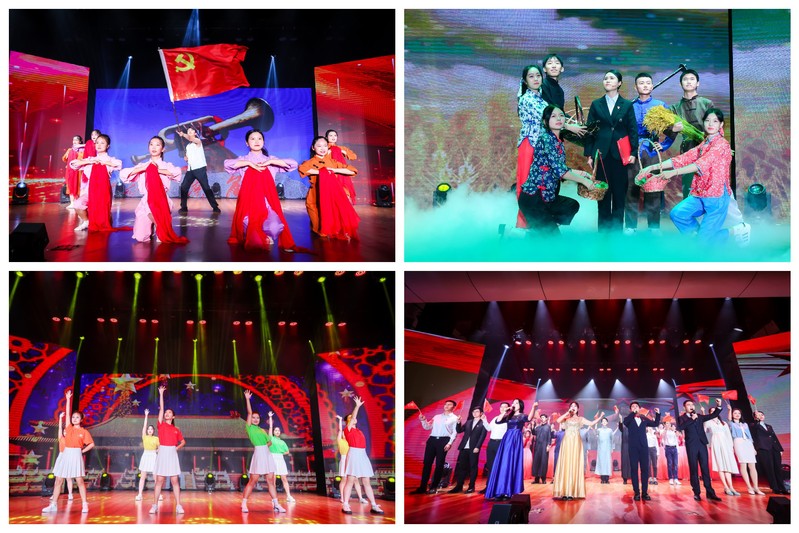大舞台上讲述大故事。在青春剧场的璀璨舞台上,学生党员穿上长袍“演起来”,精彩的话剧表演生动还原了中共三大举行时的场景,再现了那段无产阶级革命家们探索革命道路的峥嵘岁月;《没有共产党就没有新中国》等红歌响彻剧场时,学生党员们激情澎湃地“舞起来”,激发出杏林学子的爱党之情;《在希望的田野上》旋律中,思政课教师和学生党员代表生动鲜活“诵起来”,让改革开放的春风吹进每位师生的心中,砥砺着南中医人的奋进之志;在《领航》慷慨激昂的音乐中,全场师生满怀深情“唱起来”,抒发出“永远跟党走”的坚定信念和决心。