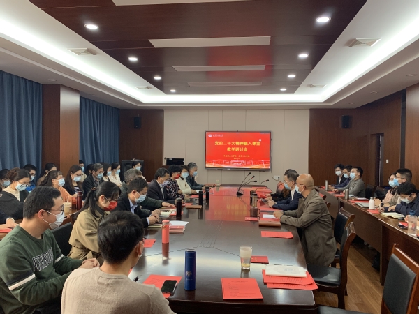 马克思主义中国化教研室教师罗馨、道德与法律教研室教师刘文、中国近现代史教研室教师陈紫竹、马克思主义原理教研室教师陈方平、研究生思政课教研室教师孙会、医学人文教研室教师李超、文化艺术教研室教师王思特分别就如何将党的二十大精神融入课程教学作会议交流。