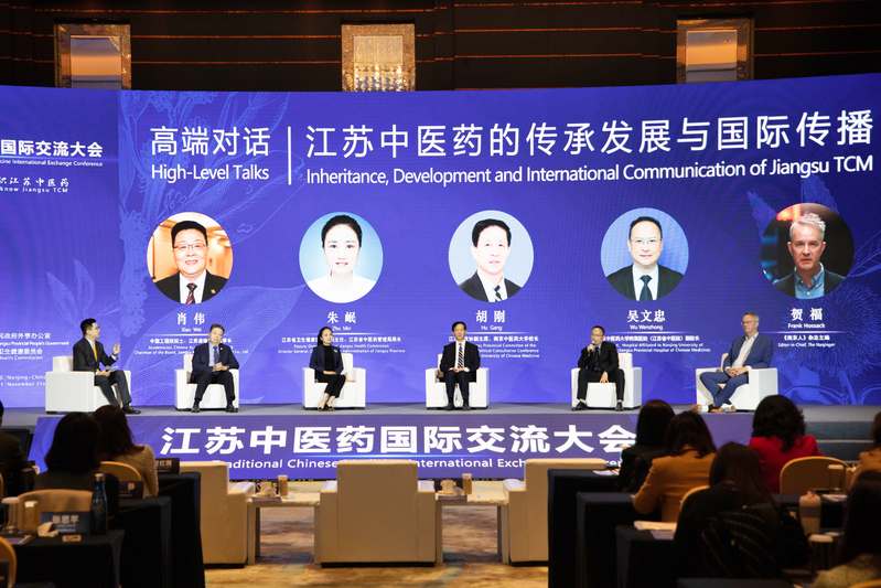 11月21日上午,由江苏省人民政府外事办公室、江苏省卫生健康委员会联合主办的江苏中医药国际交流大会在南京举行。本次大会以“让世界认识江苏中医药”为主题。全国政协常委、江苏省政协副主席、南京中医药大学校长胡刚,江苏省人民政府外事办公室副主任刘建东,江苏省卫生健康委员会副主任、江苏省中医药管理局局长朱岷,南京中医药大学副校长、南京中医药大学附属医院(江苏省中医院)党委书记方祝元,中国工程院院士、南京中医药大学附属康缘药业(江苏康缘药业)董事长肖伟等出席会议。