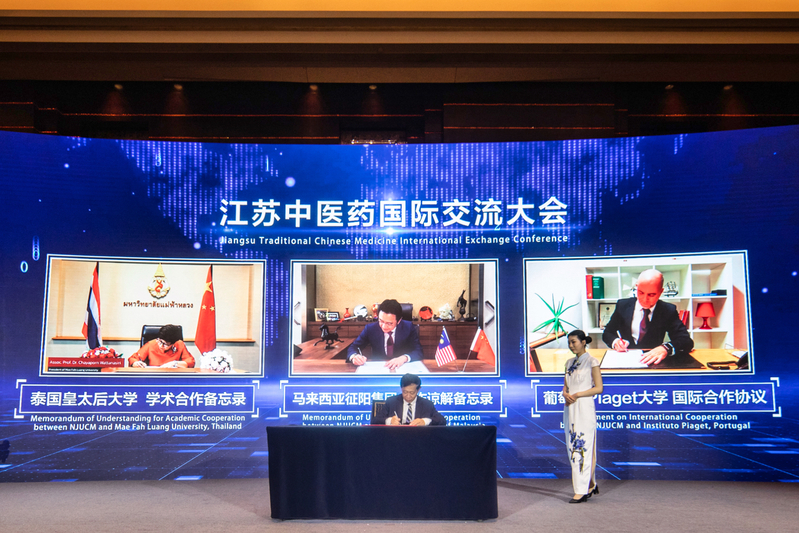 近年来,我校作为首批“国家中医药服务出口基地”,积极履行世界卫生组织(WHO)传统医学合作中心、国际针灸培训中心工作职能,不断推进中医药国际教育高质量融入共建“一带一路”,推动江苏中医药走向世界。在本次大会上,校长胡刚代表学校与泰国皇太后大学、马来西亚征阳集团、葡萄牙PIAGET大学云签署合作协议。未来,学校将开展更加务实的人才培养、医疗服务、文化交流等多领域合作,服务全球卫生治理。
