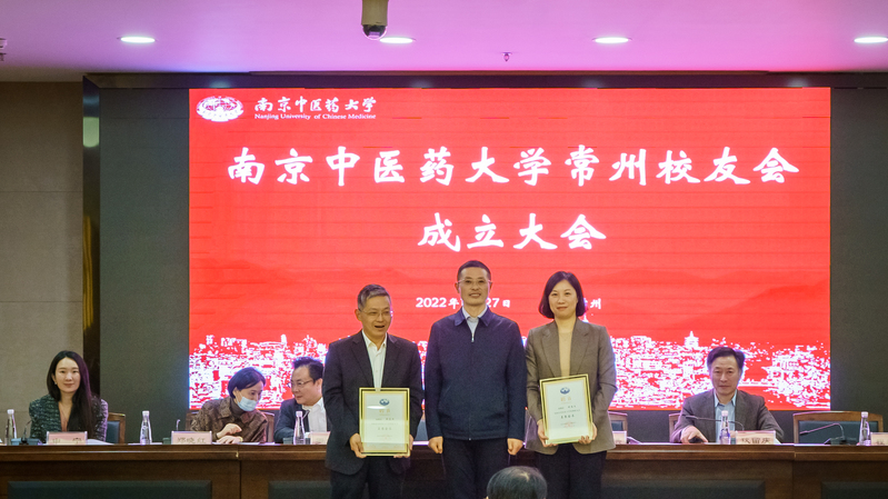 学校发展规划处、社会资源处处长郑晓红代表校友总会宣读《关于同意成立南京中医药大学常州校友会的批复》。校友蒋涛代表常州校友会筹备委员会作筹备工作报告。校友程逸文代表常州校友会筹备委员会宣读《南京中医药大学常州校友会组织架构及成员名单》,到会校友审议并一致通过,刘志洪、程逸文担任名誉会长,葛信国当选理事会会长。乔学斌代表校友总会向常州校友会授牌。乔学斌为常州校友会第一届理事会代表颁发聘书。