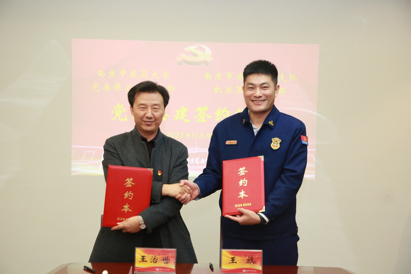11月30日下午,党委保卫部党支部与南京市消防救援支队机关第二党支部开展校地共建主题党日活动。南京市消防救援支队政治部主任滕峰、机关第二党支部书记王旗和我校党委常委王九龙、机关党工委书记张世勤、党委保卫部部长王治世及双方党员代表参加,活动由党委保卫部副部长、党支部副书记张同远主持。