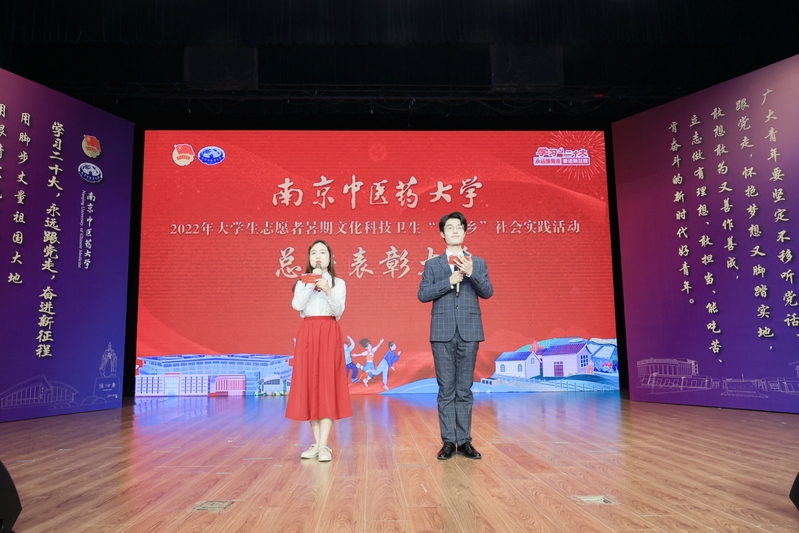 12月7日下午,南京中医药大学2022年大学生志愿者暑期文化科技卫生“三下乡”社会实践总结表彰大会在仙林校区大学生活动中心青春剧场举行。校党委常委、宣传部部长刘晓,党委宣传部、党委学生工作部、校团委、教务处、马克思主义学院负责同志,各学院学工书记、分团委书记、校团委全体工作人员以及获奖师生代表等200余人参加会议,表彰大会网络同步直播。