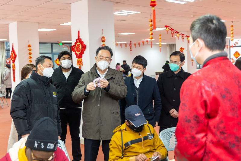 在详细了解了学校假期留校留学生有关工作情况后,葛道凯给予充分肯定,强调新的一年学校要结合实际积极探索推动境外学生工作常态化,并叮嘱学校继续为留校学生做好服务,让学生充分感受温暖热烈的年味儿。