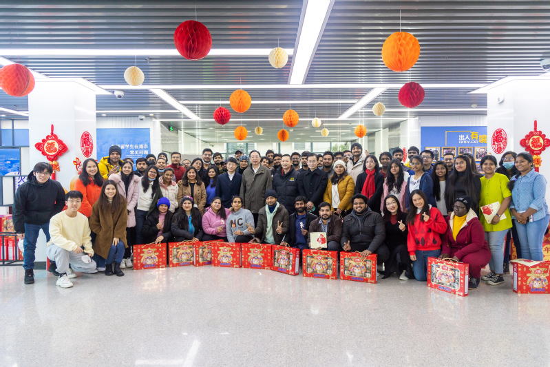 在与留学生的互动交流中,葛道凯亲切询问了大家日常学习、生活情况,叮嘱远渡重洋求学的留学生要进一步加强与中国同学的沟通交流,在互相学习中增进珍贵友谊;并勉励留学生在保持身心健康、完成学业要求的基础上,利用课余时间走出校园,领略中国的自然和人文风光、体验感受中华文化,努力成为自己的祖国与中国友好交流的“桥梁”。葛道凯向同学们送上新春祝福,祝愿大家在新的一年里“兔”飞猛进、大展宏“兔”。