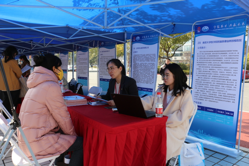本次招聘会是我校“奋进新征程 就业向未来”春季校园招聘服务月系列活动开展以来首个地区专场招聘活动,得到了市区两级人社部门的大力支持。在前期充分调研毕业生求职需求与用人单位岗位需求的基础上,南京市栖霞区、秦淮区人社局共组织扬子江药业集团、正大天晴制药有限公司、泰康仙林鼓楼医院、秦淮区下属社区卫生服务中心等32家优质企事业单位组团参会,提供招聘岗位超1200个,需求涵盖我校各学历层次和大多数学科专业,吸引了我校800余名2023届毕业生到场应聘。