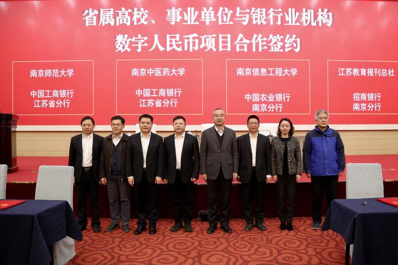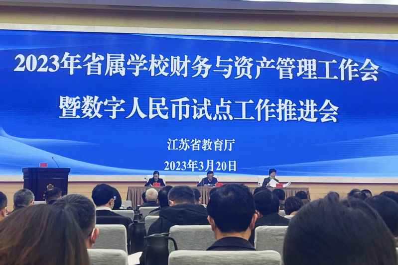 为深入贯彻落实党中央、国务院关于金融工作的决策部署,按照中国人民银行扩大数字人民币试点的工作安排和省委、省政府工作要求,稳妥有序推动数字人民币在教育领域的试点应用,省教育厅遴选了我校及南京师范大学、南京信息工程大学与江苏教育报刊社等四家单位作为数字人民币试点单位。会议期间,人民银行南京分行就数字人民币试点工作做介绍,强调各试点单位要切实提高政治站位、加强组织领导、明确职责分工、优化数据环境、积极宣传引导,稳妥有序开展校园内数字人民币试点工作,为全省数字人民币试点工作提供可复制、可推广的经验。