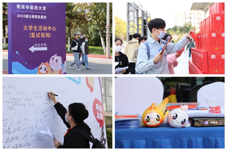 学校还为每位考生准备了惊喜礼物。考生在通过资格审核后,可以抽取以锦鲤为原型设计的南中医研招卡通形象“南小妍”“南小昭”盲盒,盲盒内包含印有9种不同形态“南小妍”“南小昭”的多功能数据线,寓意学校与考生“山水相连,不见不散”。报到现场专门摆放了可以让考生打卡留念的“心愿墙”,祝福考生“全力以赴,一往无前”。