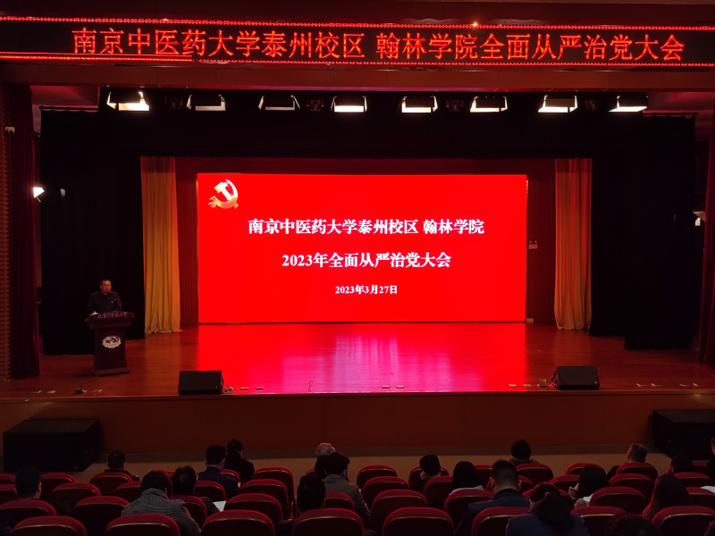 3月27日,我校泰州校区、翰林学院召开全面从严治党大会。泰州校区、翰林学院全体领导,全体中层干部,各支部书记、纪检委员,各部门秘书,全体辅导员参加会议。南京中医药大学泰州校区党工委副书记、综合办副主任,翰林学院党委副书记、副院长何学建主持会议。