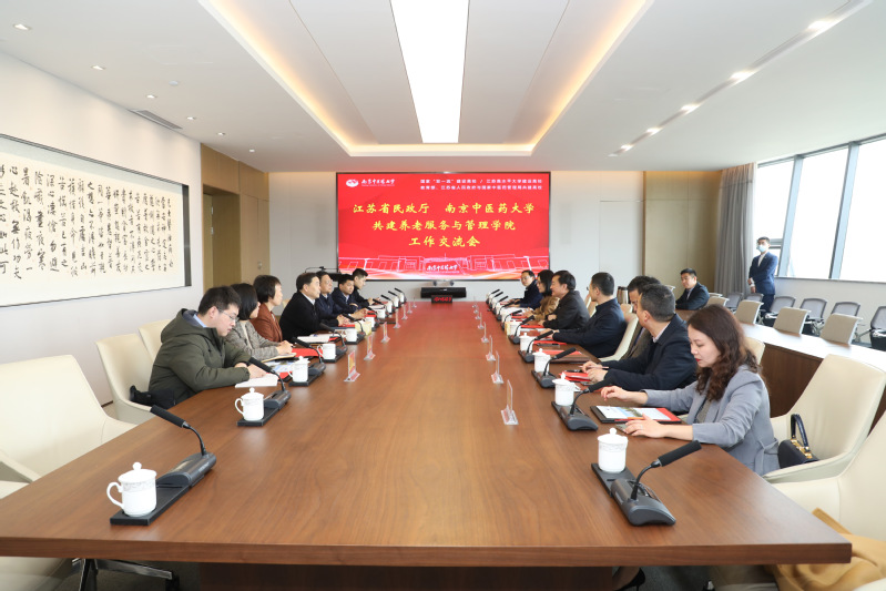 程纯对谢晓军一行表示欢迎,对江苏省民政厅关心支持养老服务与管理学院建设和我校事业发展表示感谢。他指出,江苏省民政厅和南京中医药大学合作共建养老服务管理学院,是双方积极贯彻落实国家重要战略,抢抓机遇、主动作为,共同探路全国养老服务建设、创新养老服务人才培养模式的重要举措。作为部省共建人才培养项目,养老服务与管理学院坚持高起点定位、高标准建设,得到了民政部、江苏省政府的高度重视和大力支持。政校双方通力合作、攻坚克难,学院成立两年以来在人才培养、学科建设、政产学研合作等方面都取得了阶段性成果,办学实力稳步增强,社会声誉和影响力不断提升。他表示,学校将与江苏省民政厅一道,继续锚定一流、争做标杆,力争把学院办出特色、办出水平。养老服务与管理学院执行院长田侃汇报了学院工作进展情况。