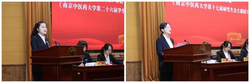 第二十六届学生会执行主席缪妍、第十七届研究生会执行主席王寒向大会作题为《团结奋进心向党,逐梦杏林勇担当——为奋力谱写中医药发展新篇章汇聚青春力量》《敢于担当,善于作为,锐意革新,砺行致远——在新时代新征程上书写中医药事业新答卷》的工作报告。
