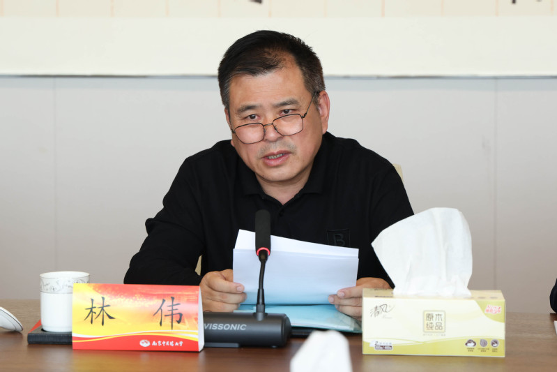 林伟介绍了江苏省组织学士学位授予质量专项督导工作的背景、重要意义、督查内容和相关要求。督查组听取了学校本科专业建设总体情况、学士学位规章制度制定及执行情况、近三年学士学位授予及信息报送情况、学士学位管理工作改进措施等方面的学校学士学位授予工作汇报。