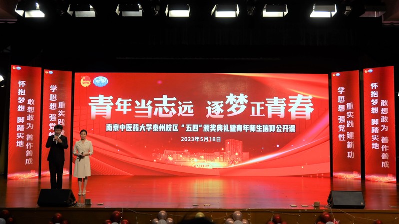 5月18日下午,“青年当志远,逐梦正青春”南京中医药大学泰州校区2023年“五四”颁奖典礼暨青年师生信仰公开课在泰州校区青春剧场举行。南京中医药大学党委常委、副校长、泰州校区管委会主任孙志广,共青团泰州市委员会副书记刘俨,南京中医药大学党委常委、泰州校区党工委书记王九龙出席活动;泰州校区管委会全体领导,校团委、校学工处、校关工委和共青团泰州医药高新区(高港区)有关负责同志,苏中药业集团、药城国际遗传工程和生物技术中心的特邀嘉宾,泰州校区学工办、团委全体人员以及青年学生代表参加活动。
