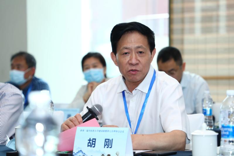 为更好贯彻落实党的二十大精神及习近平总书记关于促进中医药传承创新发展重要指示精神,加快实现高水平科技自立自强,推进“用现代科学解读中医药原理”,5月19日,世界一流中医药大学建设联盟在湖南召开第七次理事会,会议决定由联盟牵头并带动全国中医药院校实施“解码中医”大科学计划。会议由我校校长胡刚主持。