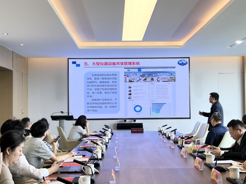 我校国有资产与实验室管理处科技实验中心主任张颢对我校大型仪器共享平台建设基本情况作交流汇报,并分享了大型仪器共享平台建设的工作经验与建设思路。双方就科技实验中心人员招聘、职称评审考核、仪器管理、大型仪器开放共享与托管以及实验室安全管理等内容进行讨论交流。