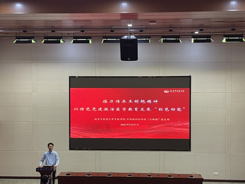 会上,倪昊翔以《接力传承王明艳精神,以特色党建激活医学教育发展“红色动能”》为题作主旨发言。他介绍“王明艳”党支部以“燃烧自己、点亮事业”的精神基因为内核,通过开辟“王明艳”师德示范教育展厅,开展追思会、座谈会、报告会等活动,以传承弘扬王明艳精神为己任,汲取身边榜样的力量,不断激发师生干事创业的热情和激情;通过积极探索“互联网+党建”“实境体验+党建”“师德示范+党建”,创新政治学习形式,以高质量党建引领中西医结合学科建设和人才培养,为服务卫生健康事业做出贡献。