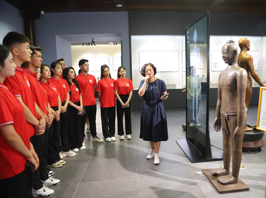 实践团师生首站来到江苏省中医药博物馆,参观中国医史馆、江苏中医馆、中药馆、养生文化馆等展厅,体验中医药文化的千年传承魅力,全方位了解江苏中医药特色成就和我校文化底蕴。参观过程中,实践团成员和我校青年学生共练传统保健功法八段锦,体验中华优秀传统文化魅力。团委书记陈小进、副书记丁思喆,党委学工部新疆驻派老师和团委社团管理部负责老师、青年学生代表等陪同参观。