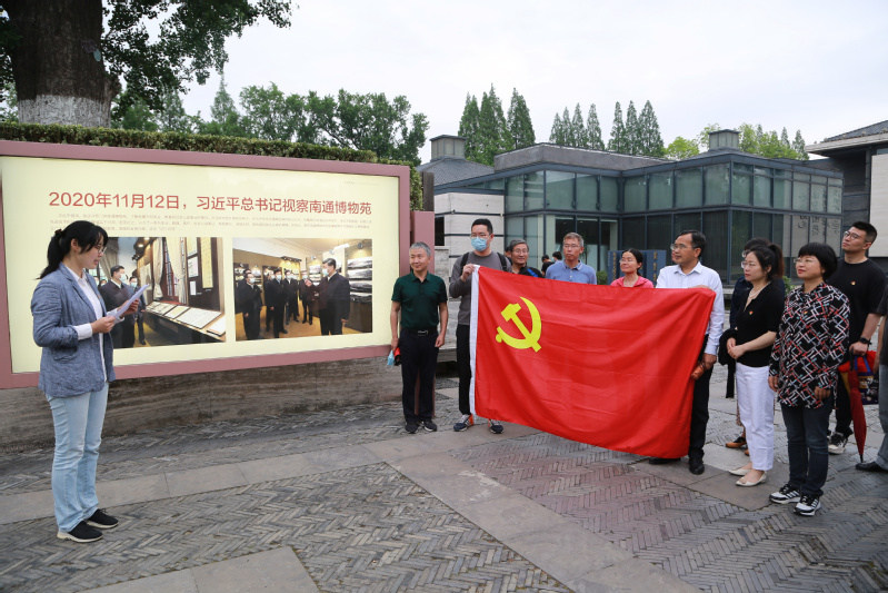 6月4日上午,党员教师赴南通博物苑集体参观学习。南通博物苑由晚清状元张謇创办,是中国人独立创办的第一座公共博物馆。2020年11月12日下午,习近平总书记在此地参观,了解张謇“实业救国”、发展教育和社会公益事业的事迹,高度评价张謇是中国民营企业家的先贤和楷模。全体党员通过参观张謇生平介绍展陈,观看其在南通建工厂、办学校、兴修水利以及致力于市政建设的历史珍贵照片,真切感受到张謇先生“心系家国,知难而进,敢为天下先”的精神与追求,为他在实业救国、造福桑梓的实践中展现出的爱国情怀、开放胸襟、创新精神、诚信品格、民本意识所深深感染。在场馆门前,中国近现代史教研室刘波儿老师用一堂精彩的微党课,带领在场党员教师一起学习了张謇爱国精神的时代意义。