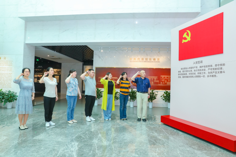中国共产党代表团梅园新村纪念馆全面展现了周恩来等老一辈无产阶级革命家忠诚于党、服务人民、艰苦奋斗、履行使命的革命精神和卓越品质。在讲解人员的带领下,读书班全体成员怀着崇敬的心情参观了陈列的300多件珍贵文物、文献资料、历史照片和历史影像资料。历史是最好的教科书,红色资源是学习历史的重要载体,读书班的成员在参观学习中,追寻红色记忆,重温峥嵘岁月。在史料陈列馆入口大厅,全体读书班成员在党总支书记王海波的带领下,重温入党誓词。