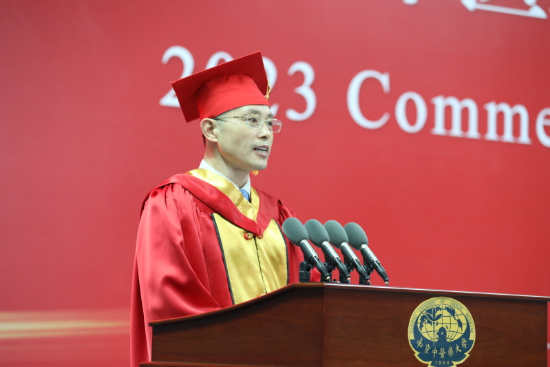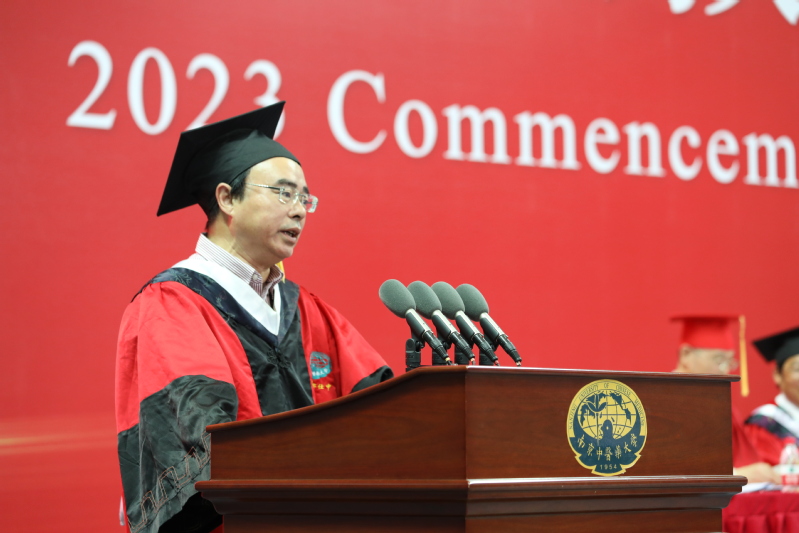 胡刚校长殷切勉励2023届毕业生,希望同学们在谱写新时代青春之歌的新征程上,立志做有远大志向的探索者、知行合一的实干家、善作善为的追梦人,在强国建设中建功立业,在复兴道路上阔步前行。