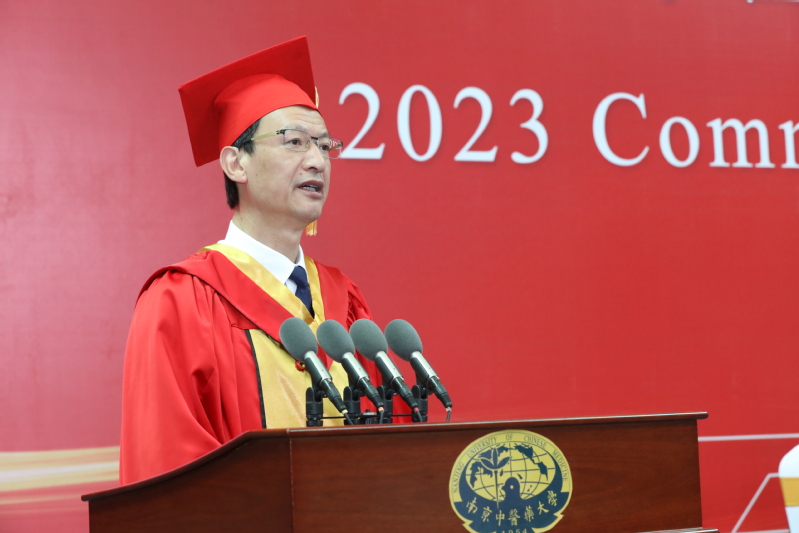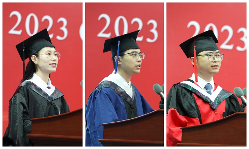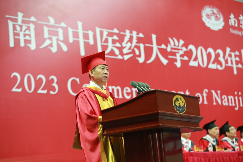毕业本科生代表、针灸推拿学院·养生康复学院戴明珠,毕业留学生代表、国际教育学院硕士研究生沈凡承,毕业研究生代表、第一临床医学院博士研究生程成分别发言。他们表示,将会接好传承创新发展中医药的接力棒,在新征程上奋力奔跑、追求卓越,为中国式现代化和中华民族伟大复兴贡献青春力量。
