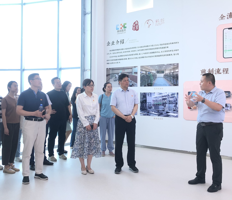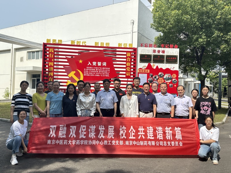 南京中山制药有限公司是南京医药产业集团旗下制药骨干企业,是我校国家中医药管理局中药资源循环利用重点研究室产业化基地,也是我校江苏省中药资源产业化过程协同创新中心南京分中心。成俊介绍了中山制药的发展历程、业务板块和产业工人阵地建设工作,强调了党建工作在公司发展中的根基地位和保障作用。吴啟南指出,中山制药是我校产学研融合发展的重要协同单位,双方共建承载着以党建引领业务创新、推进中药产业高质量发展的重要使命。