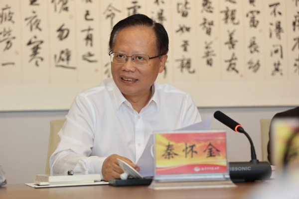 秦怀金代表国家中医药管理局对周仲瑛教授从医从教75周年表示祝贺,向周仲瑛教授致以崇高敬意。他指出,党的十八大以来,以习近平同志为核心的党中央把促进中医药传承创新发展作为新时代中国特色社会主义事业的重要内容和中华民族伟大复兴的大事,习近平总书记对中医药格外关心、格外重视,多次到中医药机构考察,对中医药工作作出一系列重要论述,为中医药传承创新发展指明了方向,提供了根本遵循,引领中医药迎来了天时地利人和的大好时机,推动中医药在健康中国建设中发挥独特优势。秦怀金强调,人才是中医药发展的第一资源,老中医药专家是中医药发展的重要力量。要充分认识传承发展老中医药专家学术思想的重要意义,系统继承他们的学术观念和临床经验,发扬他们敢于创新、善于创新的开拓精神,弘扬他们大医精诚的医德医风;要积极营造有利于老中医药专家学术思想传承发展的良好环境,坚定中医药理论自信、疗效自信、文化自信,坚持不忘本来、吸收外来、面向未来,继承不泥古、创新不离宗;要利用现代科学技术推动老中医药专家学术思想创新发展,综合带动中医诊疗技术创新、中医临床疗效评价与提升、中药新药创制和中医理论创新,更好地服务新时代中医药创新发展;要以临床疗效作为中医药传承创新发展的生命线,从老中医药专家的成长之路,进一步总结凝练中医药人才成长规律,加强中医临床人才培养。秦怀金对学校的悠久历史和办学实力给予了高度评价,他表示,国家中医药管理局将一如既往地支持学校事业发展,希望学校能够保持强劲势头,全面推进一流中医药大学建设,为中医药高质量发展、健康中国建设作出更大贡献。