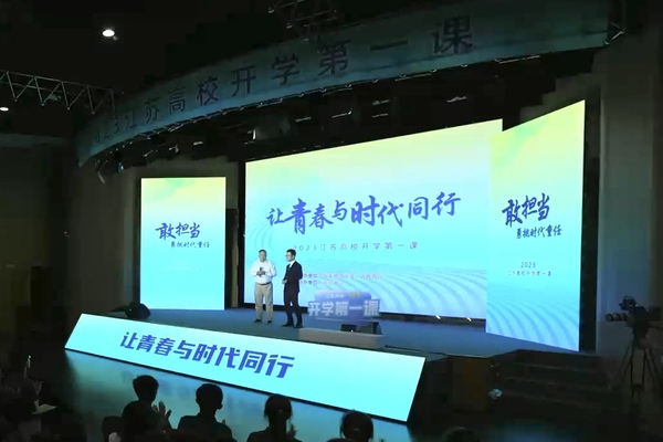 9月25日上午,由省委教育工委、省教育厅主办的“让青春与时代同行”2023年江苏高校“开学第一课”正式上线。一堂思政大课,一场精神盛宴。在有理想、敢担当、能吃苦、肯奋斗四个篇章中,包括高校党委书记、中国科学院院士、优秀青年科研骨干、全国高校黄大年式教师团队带头人、中国大学生自强之星标兵、江苏省大学生就业创业年度人物、世界技能大赛金牌获得者、中国国际“互联网+”大学生创新创业大赛总冠军等在内的8位嘉宾分别讲述青春与时代同行的故事。
