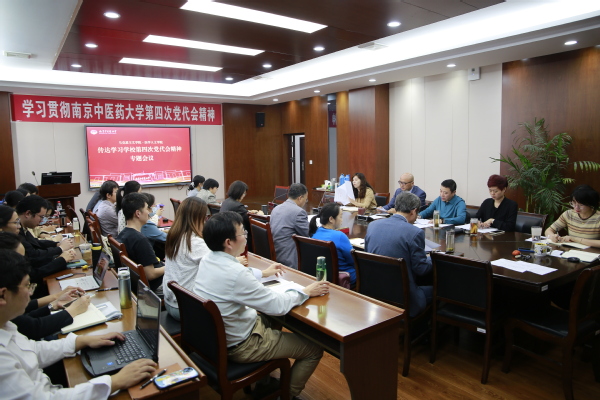 会上,院长张宗明传达了校党委书记乔学斌在党代会上所作的题为《勇担新使命 阔步新征程 奋力谱写中国特色、中国风格、中国气派一流中医药大学建设新篇章》的报告精神。大家一致认为,学校第四次党代会是在学校事业发展进入新阶段、着力推进一流中医药大学建设的关键时刻召开的一次十分重要的大会。大会报告主题鲜明、立意高远、内涵丰富、目标宏阔,全面总结过去五年学校各项事业取得的辉煌成就和宝贵经验,精准布局学校发展“定3年、谋5年、展望13年”的总体安排,科学擘画新时代新征程学校高质量发展的美好蓝图,鼓舞人心、催人奋进,为凝心聚力开创学校事业发展新局面提供了行动指南。