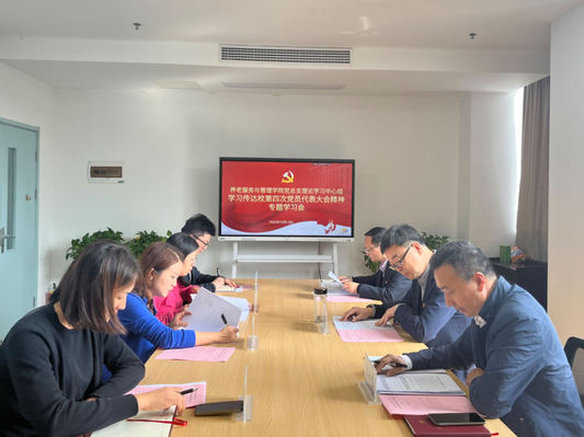 10月13日上午,养老服务与管理学院党总支理论学习中心组于丰盛楼301会议室开展专题学习,学习传达学校第四次党员代表大会精神。会议由院党总支副书记、副院长刘云龙主持。