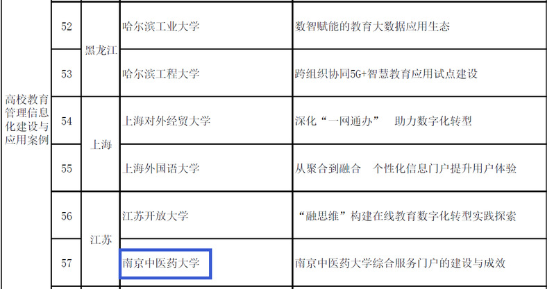 近日,教育部教育管理信息中心发布2022—2023年数字化赋能教育管理信息化建设与应用典型案例评选结果,我校网络管理与信息化办公室报送的《南京中医药大学综合服务门户的建设与成效》案例成功入选。
