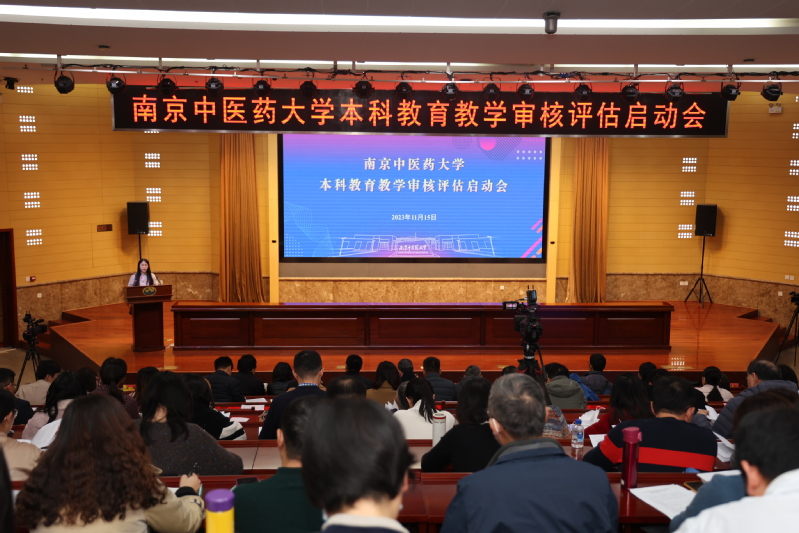 11月15日上午,南京中医药大学本科教育教学审核评估启动会在丰盛楼学术报告厅召开。省教育厅副厅长杨树兵,省教育厅高等教育处处长徐庆、一级调研员蔡华,省教育评估院副院长吴立平;审核评估专家组组长、广州中医药大学原校长王省良及专家组全体成员;我校校领导乔学斌、程海波、程革、徐树法、吴文忠、胡孔法、孙秀兰、赵霞、郝达富,全体中层干部,在宁附属医院负责人及教学管理部门负责人,督导专家代表,各学系及教研室主任,教学秘书,学工办主任及师生代表等四百余人参加会议。