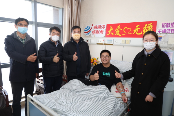 11月28日中午13点10分,经过4个多小时的采集,嵇俊棋成功捐献280毫升造血干细胞。捐献现场,学校学院领导老师、班级同学、宿舍舍友前往探望慰问。令他惊喜的是,最初给他捐献信念和勇气的余琅学姐也来到现场为他加油。“一想到我的血液会在他人的身体里流动,我就更加坚定了要认真学习、救死扶伤的决心!希望这位患者朋友能够早日康复,希望中华骨髓库越来越壮大,能够挽救越来越多的生命!”