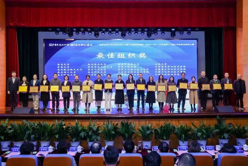 本次大赛由江苏省教育厅主办、扬州大学承办,以“筑梦青春志在四方 规划启航职引未来”为主题,分成长组和就业组两个赛道,两个赛道均分设高教组、职教组组别。来自全省各高校的123名选手参赛,经现场陈述、评委提问(综合面试)、天降(实习)offer等多个环节角逐,最终产生20个金奖、40个银奖、63个铜奖。