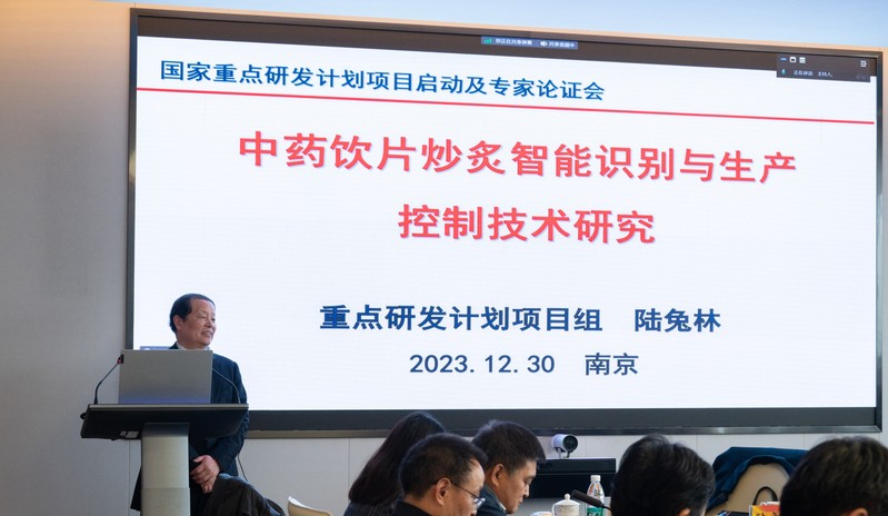 12月30日,国家重点研发计划“中药饮片炒炙智能识别与生产控制技术研究”项目启动专家论证会暨中国中药协会团体标准专家审定会在我校召开。成都中医药大学陈士林院士,中国中药协会执行副会长刘张林、中国科学院上海药物研究所果德安教授,安徽中医药大学彭代银教授,江西中医药大学杨明教授,解放军总医院第五医学中心肖小河研究员,暨南大学曹晖教授以及中国生物技术发展中心和国家中医药管理局相关专家等参加会议。我校副校长曹鹏、科技处处长杨烨、药学院院长麻彤辉、原副校长蔡宝昌、原药学院院长吴皓等相关领域专家学者以及项目组骨干成员出席会议。项目启动会由杨烨、麻彤辉、果德安共同主持。